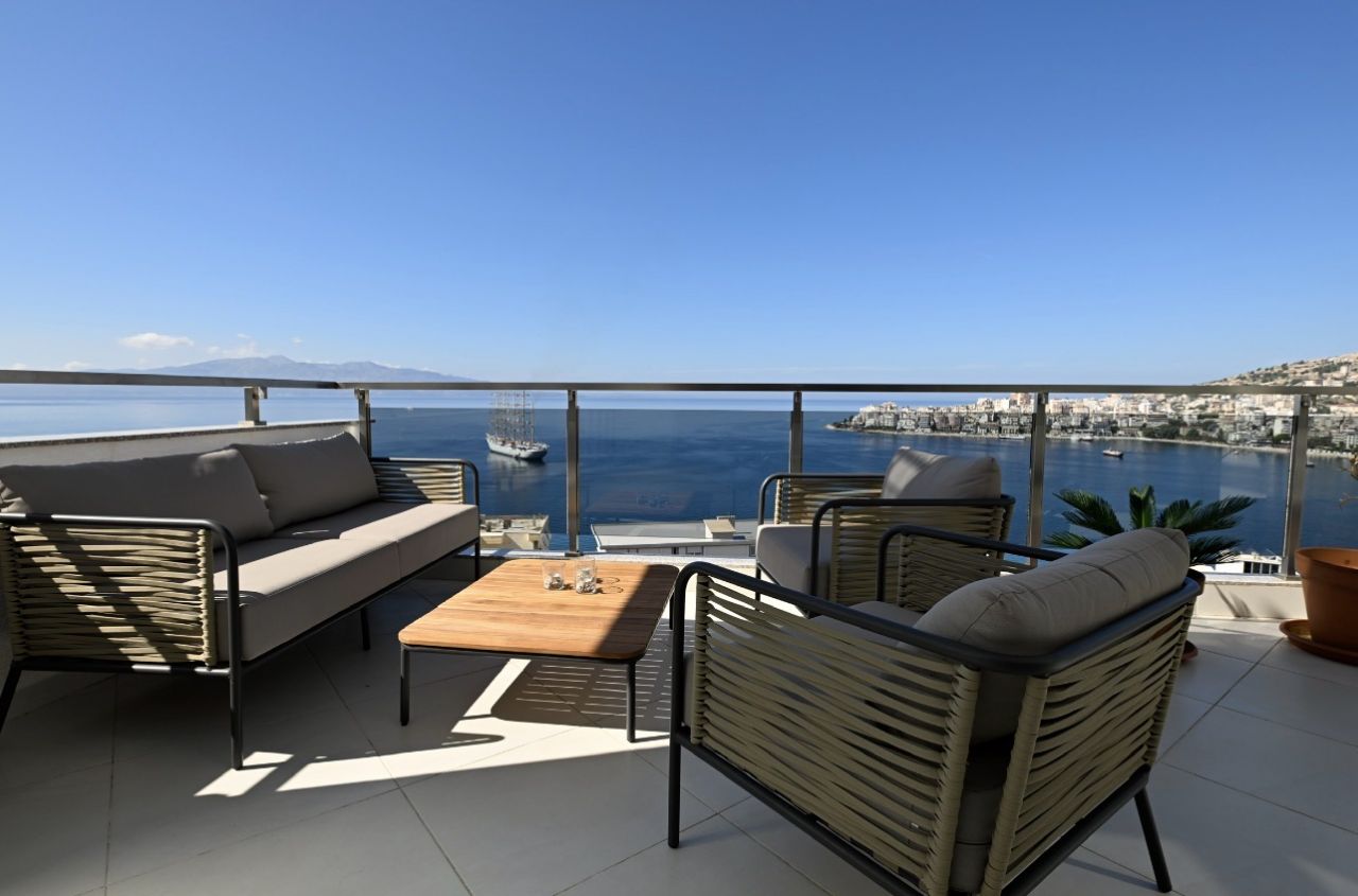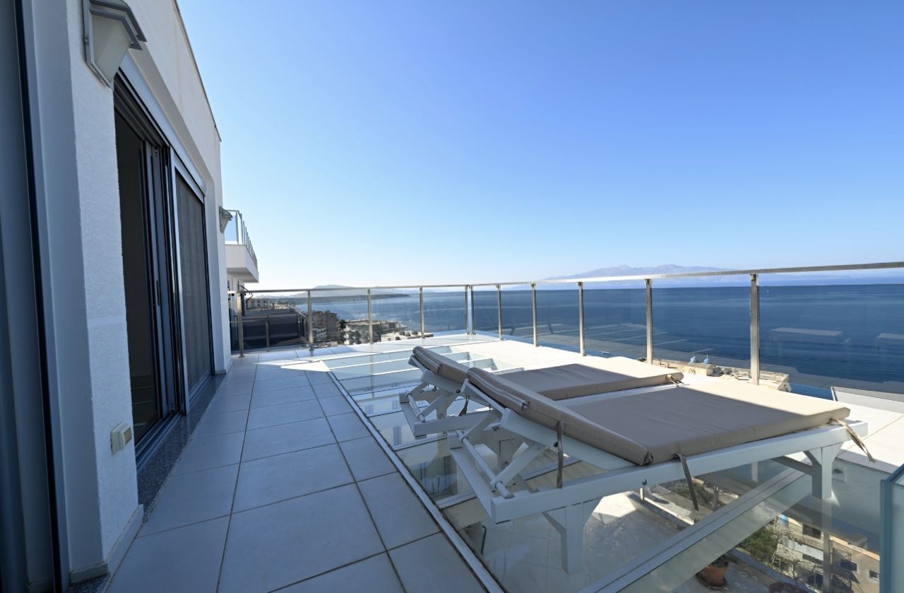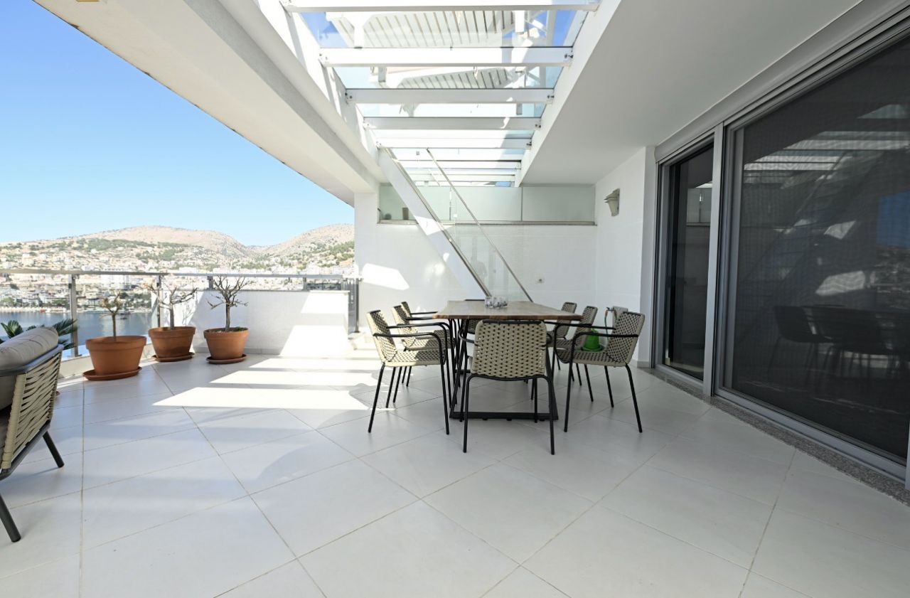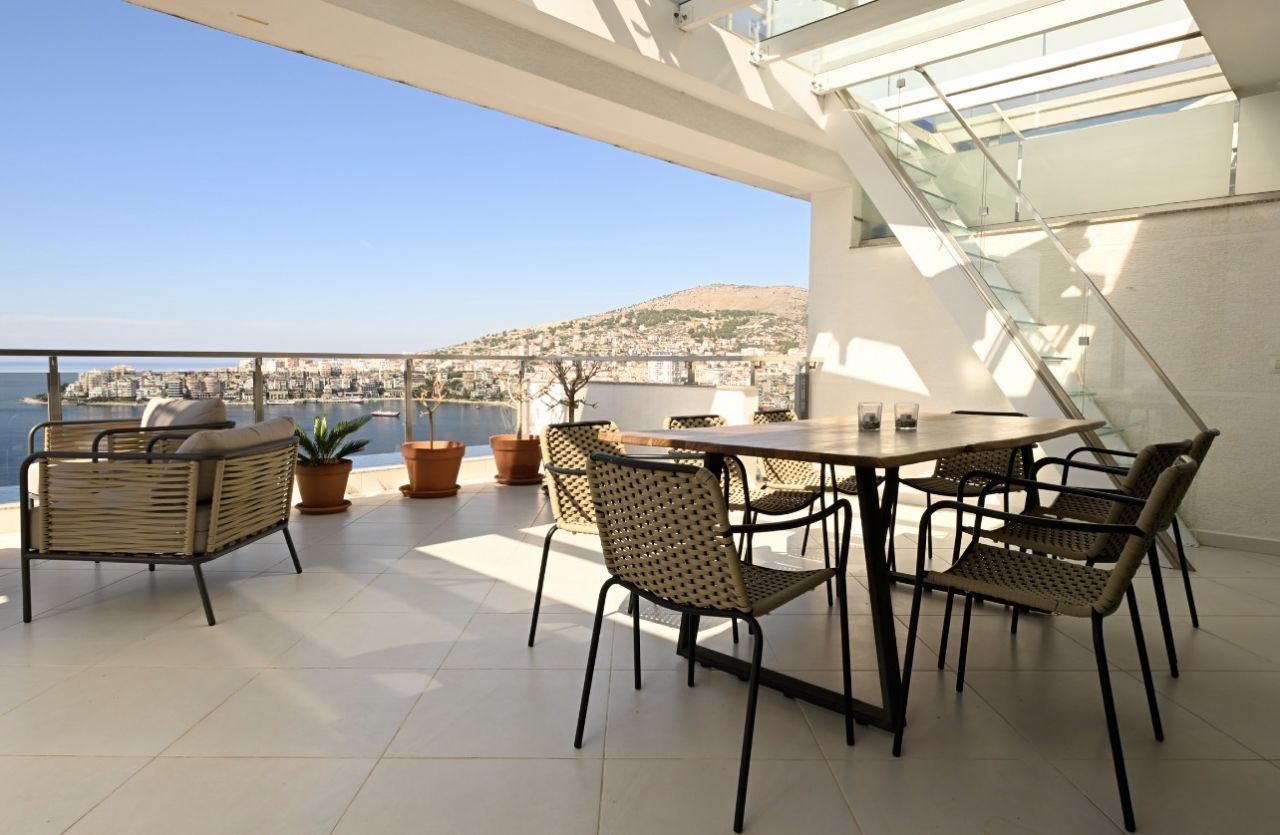 Positioned in one of the most prestigious areas of the Albanian Riviera, this exceptional duplex residence embodies elegance, space, and refined coastal living. Offering uninterrupted views over the Ionian Sea and the island of Corfu, this is a rare opportunity to own a truly remarkable property.