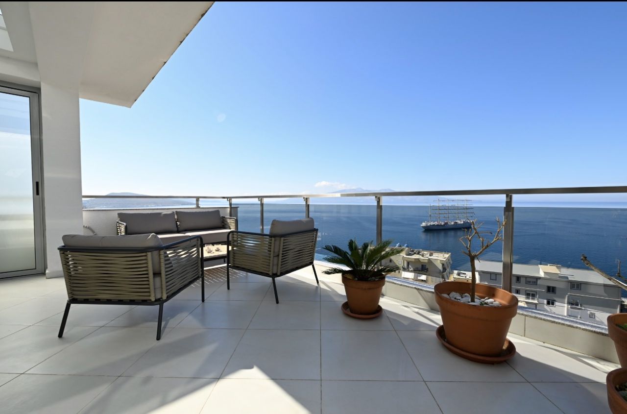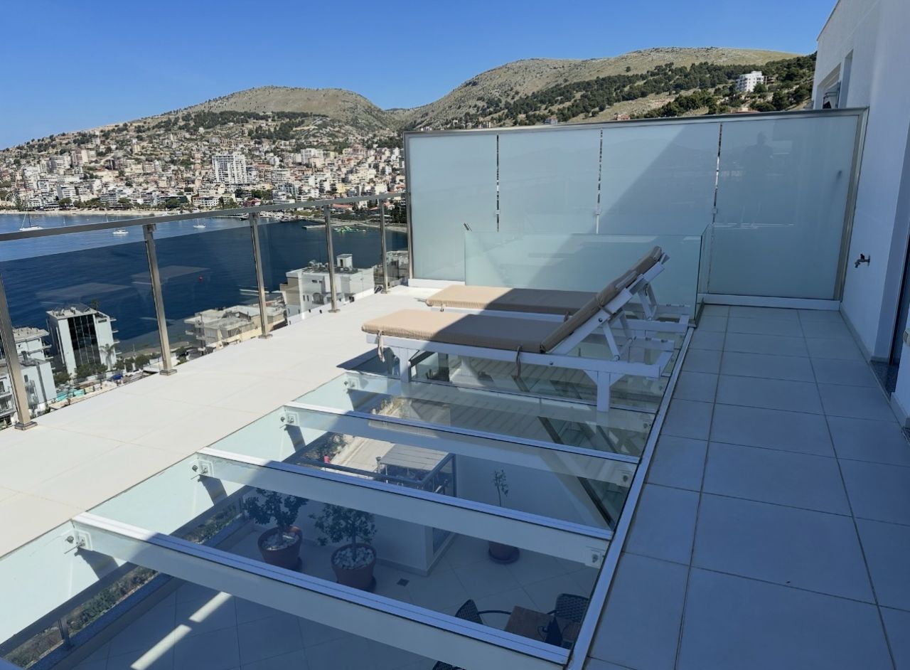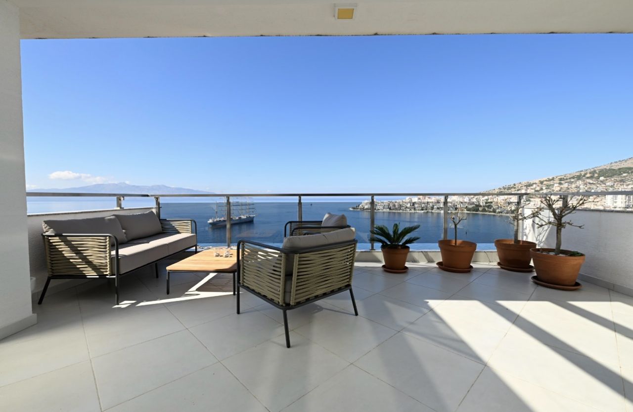 Positioned in one of the most prestigious areas of the Albanian Riviera, this exceptional duplex residence embodies elegance, space, and refined coastal living. Offering uninterrupted views over the Ionian Sea and the island of Corfu, this is a rare opportunity to own a truly remarkable property.