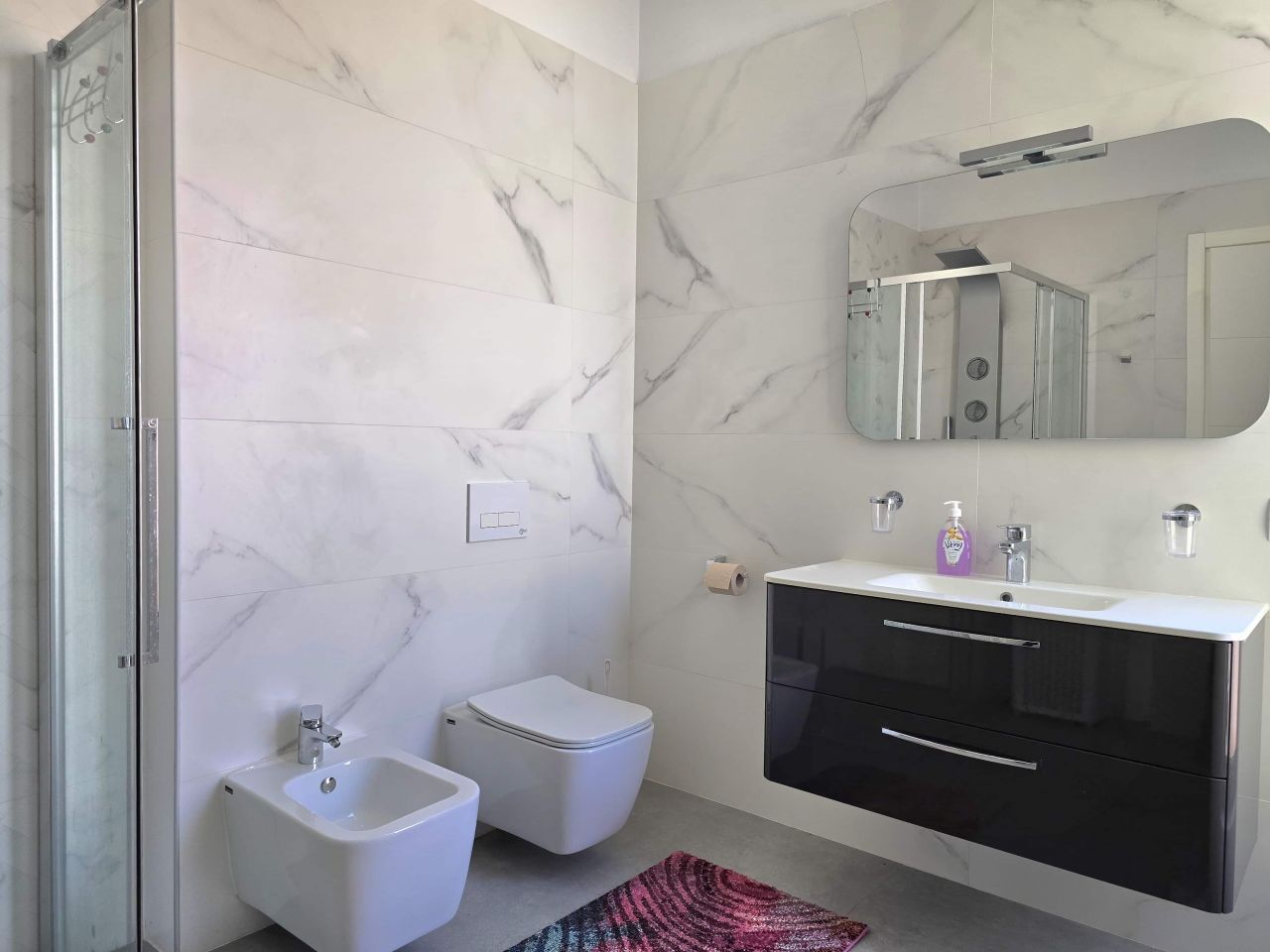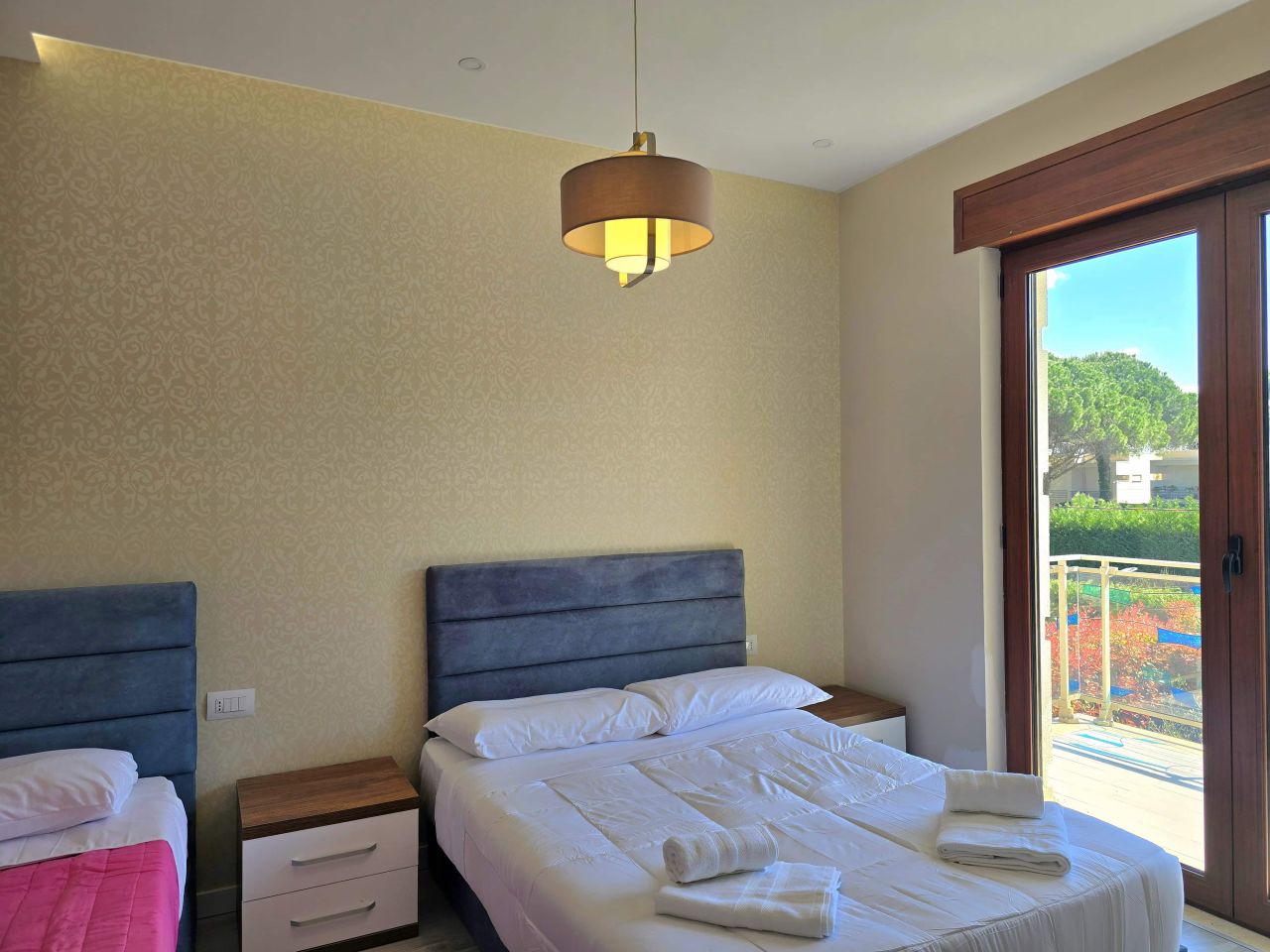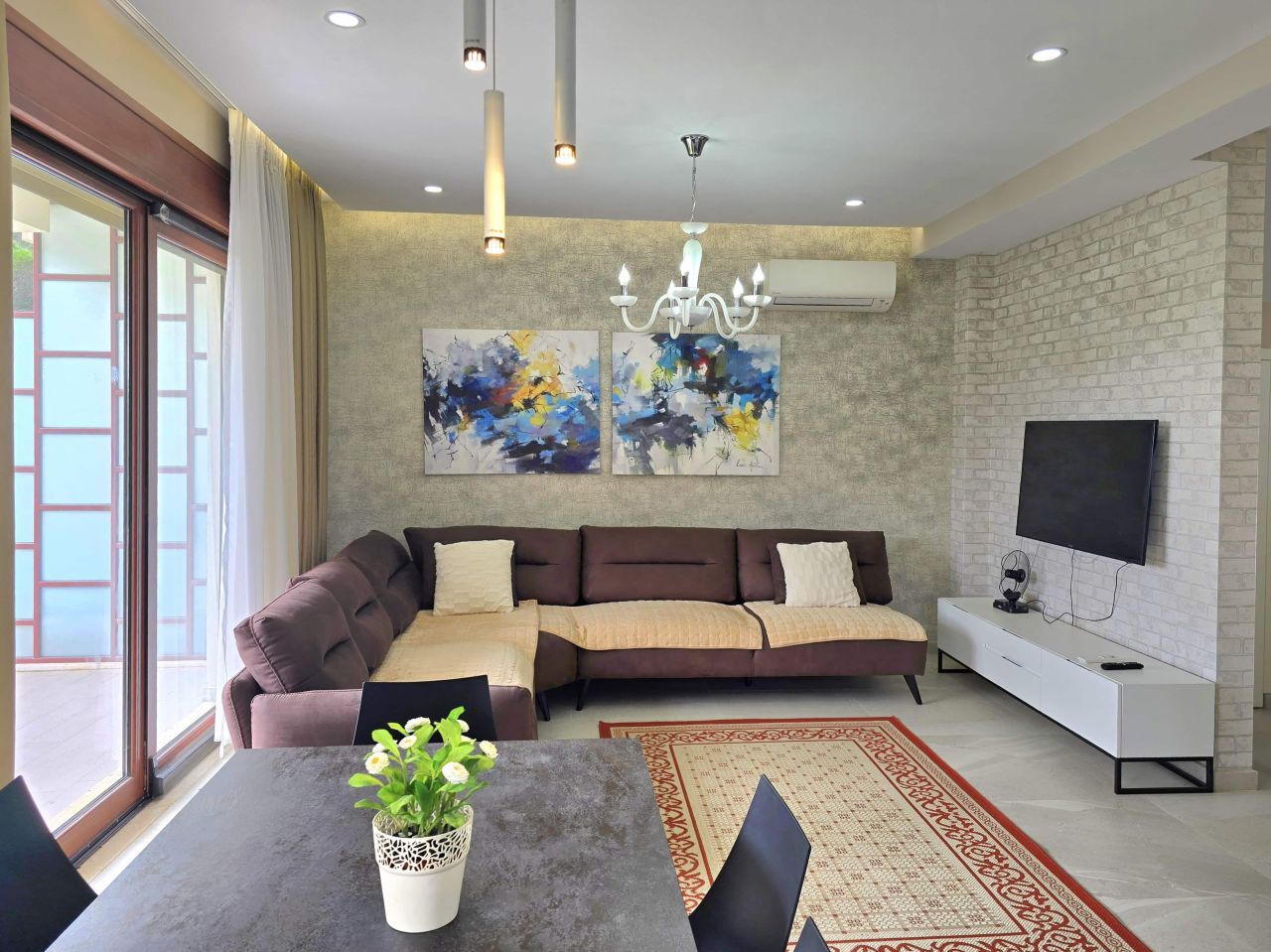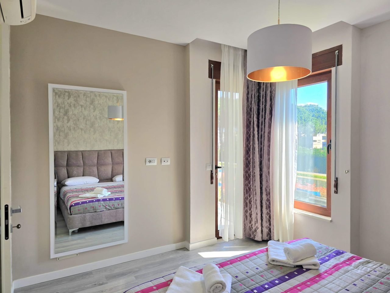 Modern Villa Fully Equipped in Perla Resort at Gjiri i Lalzit Area. Built in two floors with 3 bedrooms, living room, kitchen area, 2 bathrooms and a wonderful garden.Solar panel and Air Conditioning are also installed in the villa. Only 200 meters from the best sandy beach in Albanian Adriatic.