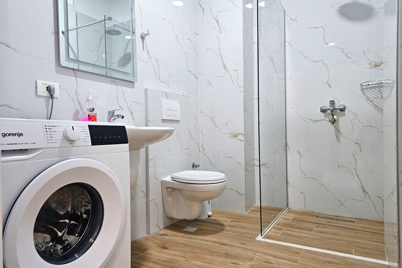 Discover this charming one-bedroom apartment for sale in Saranda, offering breathtaking panoramic views over the Bay of Sarandë and the iconic island of Corfu across the Ionian Sea. This newly built Albania real estate opportunity is in excellent condition, located in a quiet residential area just a 10-minute walk from the beach and the city center. Combining comfort, tranquility, and stunning views, it’s the perfect choice for a holiday home, investment property, or permanent residence on the Albanian coast.