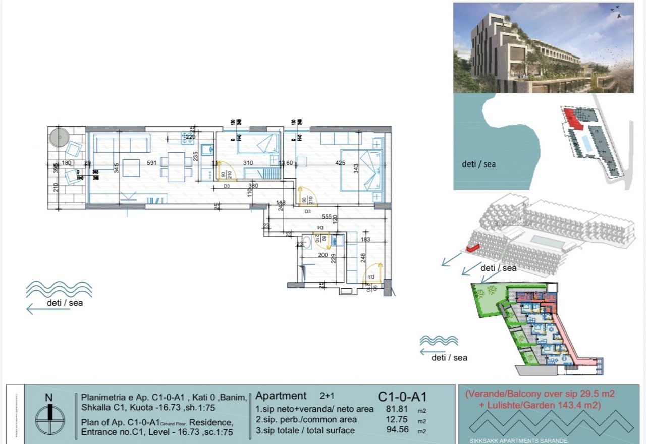 Apartment For Sale In Saranda. This apartment with two bedroom and two bathrooms it`s located on the ground floor with all the facilities nearby. You can enjoy exclusive access to a private beach and a private swimming pool. Great opportunity for investiment.