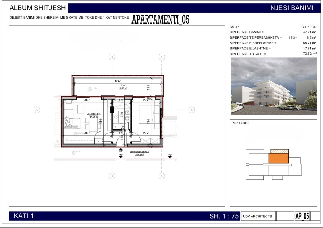 A modern 1+1 apartment is available for sale in a newly constructed building in Saranda. Located in a developing area, the apartment features a functional layout, ample natural light, and contemporary finishes built to the latest standards.