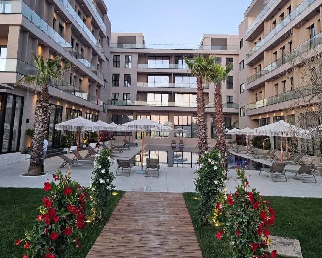 Sea Side Apartment For Sale In Radhime Vlore, Albania. Make it yours and live where others dream of vacationing. Can you imagine a house right by the beach with a view of the mountains, surrounded by an oasis of greenery and yet close to the bustling city center? At Elite Resort, in the prestigious Radhime district, this dream becomes a reality. Here you will find everything you need for a peaceful and elegant life. A private beach, swimming pool and modern architecture of the highest standard. Thanks to its location between the city of Vlora and the attractions of the Albanian Riviera, this property is a perfect choice for short-term rental.