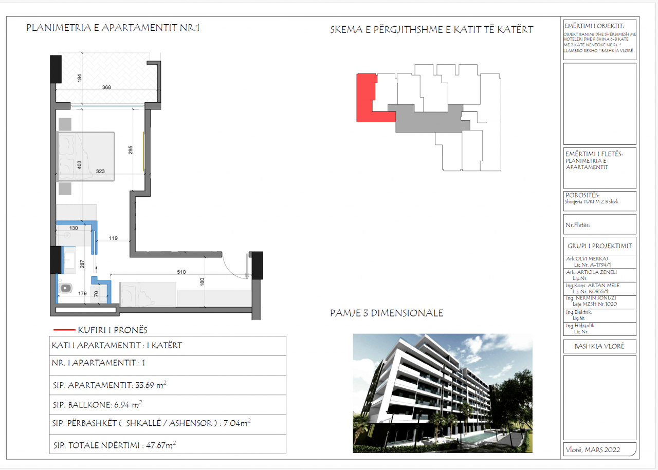 New Apartment For Sale In Vlora Albania. Seize the chance to make yours this studio with breathtaking sea view in a brand new building, currently under construction. In one of Vlora’s most desirable and tranquil areas, at Cold Water. Just a few meters from the beach, minutes from the city center and in the third line of lungomare 3. In a walking distance with all the essential services—ensuring high demand from both short-term holiday renters and long-term tenants.