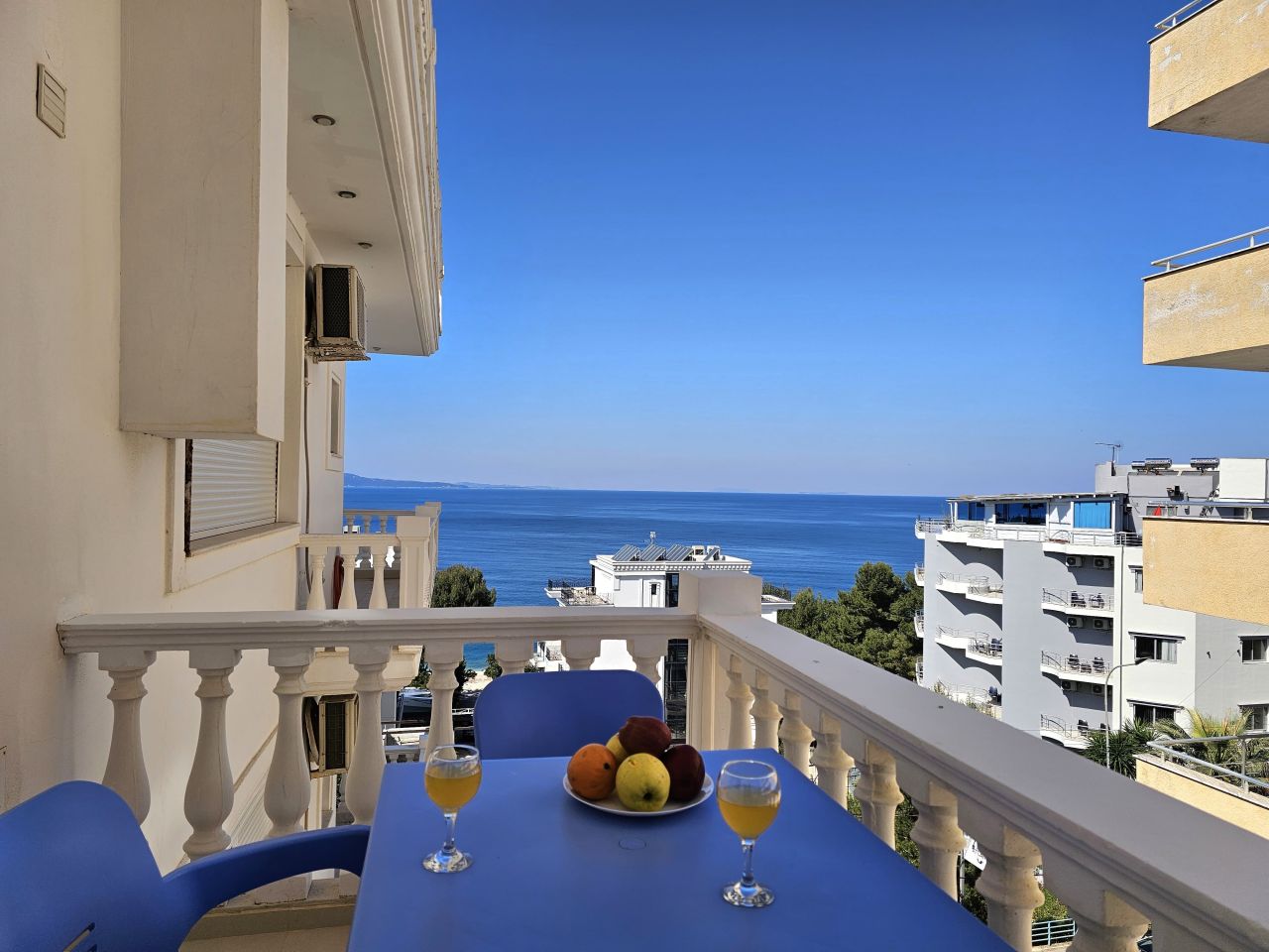 Vacation Apartments in Saranda with a beautiful sea view. You will find in the apartment all equipments necessary for a good holiday break. Front line apartments only 50 meters from the beach and 25 minutes walking from city center.