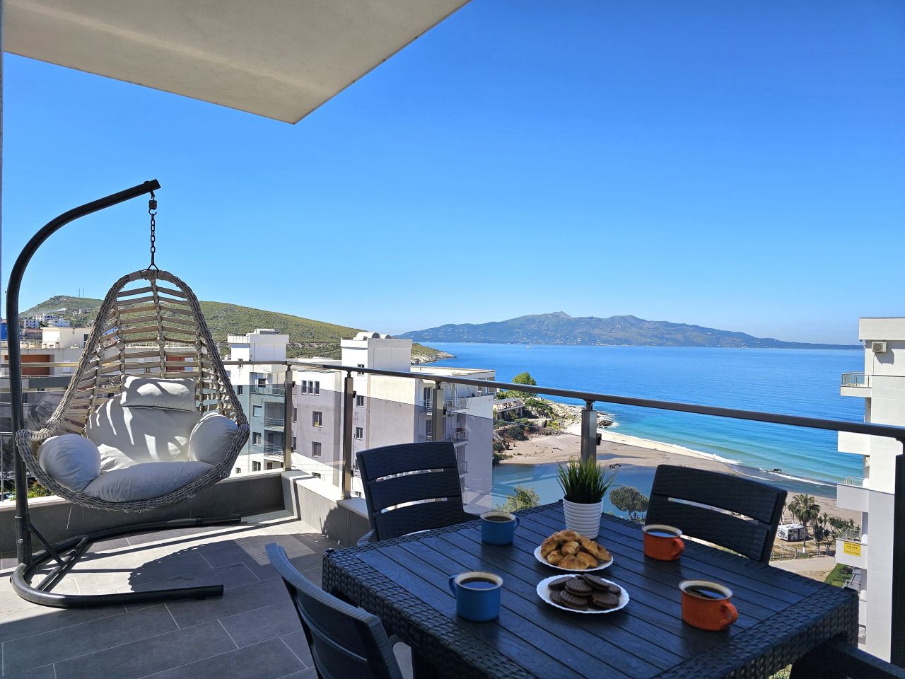 Apartment for Sale in Saranda Albania, with a total view of the Ionian Sea. It is located in a very quiet neighborhood that offers you everything you need. A good investement opportunity.