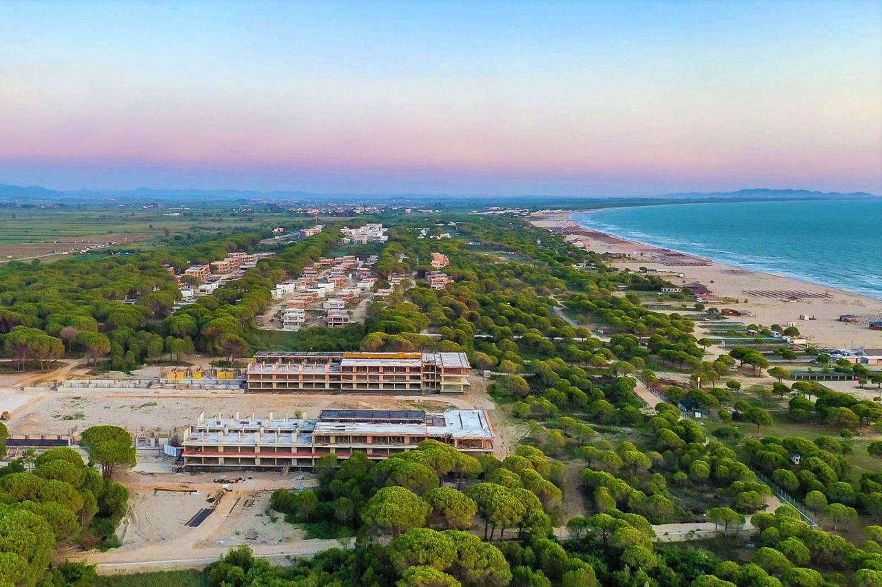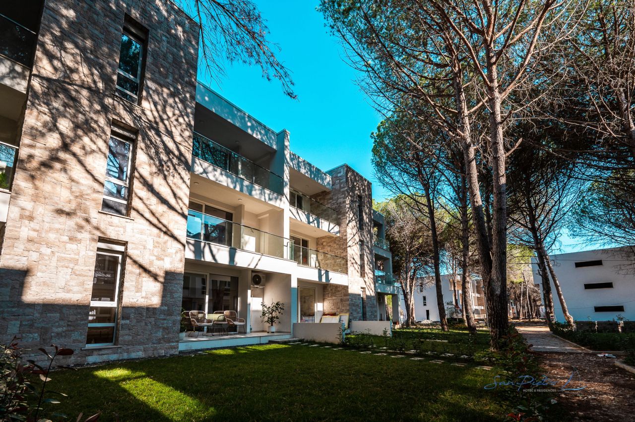 Apartment For Sale In San Pietro Resort At Gjiri I Lalzit. One bedroom apartment located in a three floor building. This resort is located at the center of the prestigious Lalzi Bay in the North of Durres. This area is known for the private and unspoiled beaches. Less than 40 min distance from Tirana International Airport.