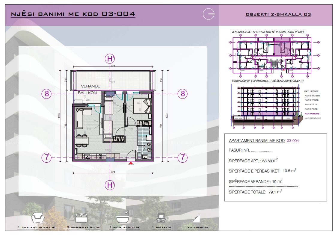 L’appartamento ha una superficie totale di 79.1 m², progettata attentamente per massimizzare funzionalità e comfort. L’interno comprende un luminoso soggiorno con angolo cottura, due camere da letto e un bagno, rendendolo un’ottima scelta come casa vacanze, investimento o residenza permanente.