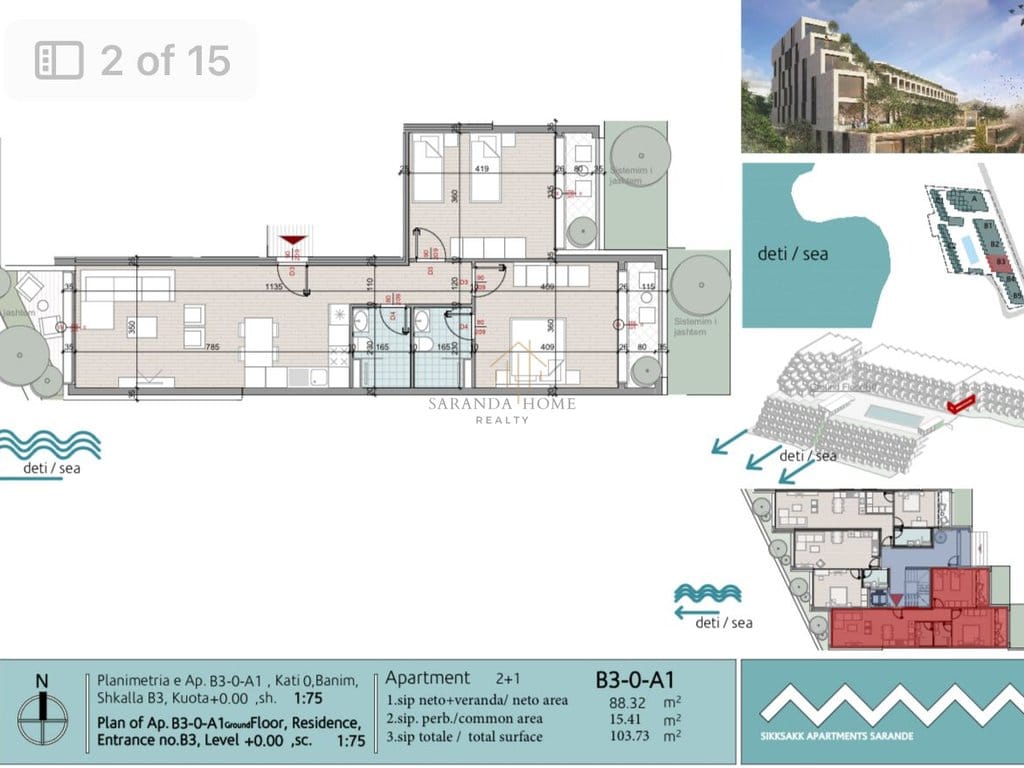 This elegant ground-floor apartment features two bedrooms and two modern bathrooms, located just steps from the beach in a quiet area below the main coastal road. Built with high-quality materials and contemporary design, it offers both comfort and long-term value. The prime location provides easy access to supermarkets, restaurants, cafés, and all essential services. Sales have just started, making this a great opportunity to secure a property in one of Saranda’s most desirable areas.